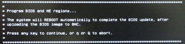 - システムの再起動後、BMCが更新プロセスを引き継ぎ、バックグラウンドでBIOSアップデートを継続します。