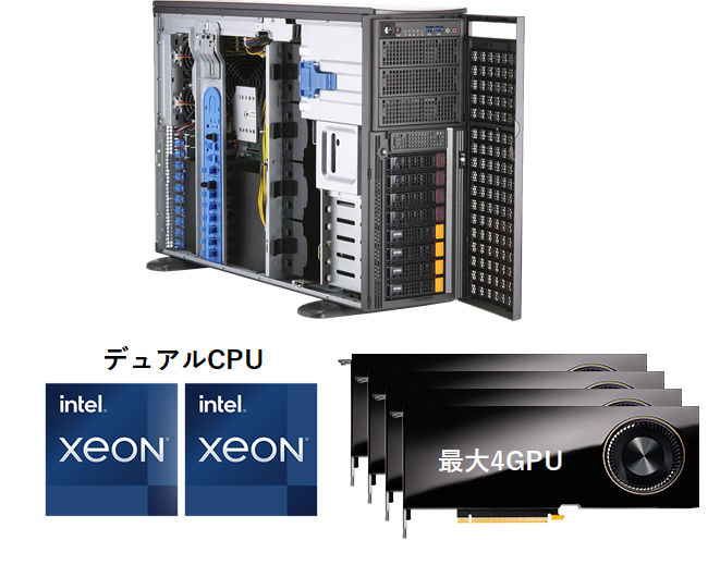 1.SWDL-S4UWSXD (タワー / 4Uラックマウント 両対応 Intel Xeon Scalable 2基搭載 GPU最大4枚 ワークステーション)
