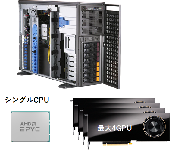 2.SWDL-S4UWSES (タワー / 4Uラックマウント 両対応 AMD EPYC 1基搭載 GPU最大4枚 ワークステーション)