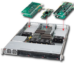 | PCI-Express | 1 (x4) PCI-E 2.0 (in x16 slot -Low Profile) 4 (x8) PCI-E 2.0 (in x16 solts - 2 in each side) AOC Compatibility Matrix |
