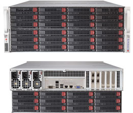 | Hot-swap | 72x 3.5" SAS2/SATA3 in 36x Hot-swap drive bays (2x HDD per bay w/LEDs for each drive) Double-sided: 24 front + 12 rear HDD Bays |