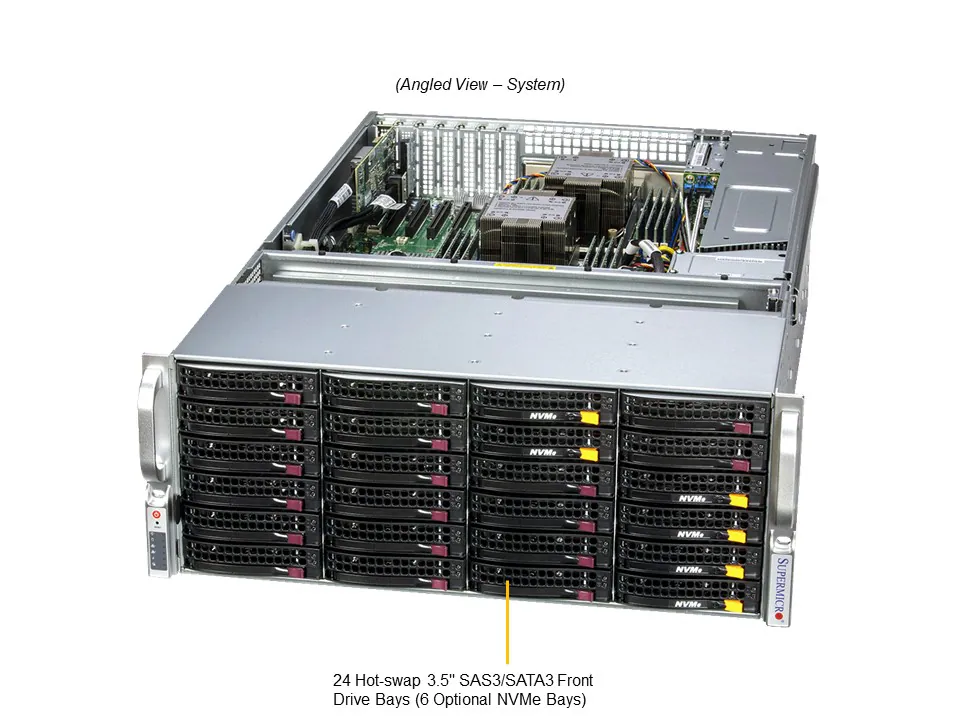 | Hot-swap | 36x 3.5″ hot-swap SATA3/SAS3 drive bays (6x 2.5″ NVMe hybrid) (2x 2.5″ hot-swap SATA3 rear drive bays) |