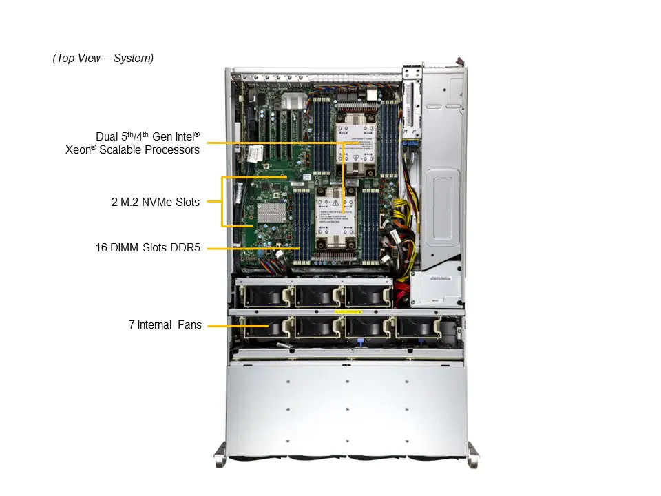 | CPU | Dual Socket E (LGA-4677) 4th Gen Intel® Xeon® Scalable processors Future support for the upcoming 5th Gen Intel® Xeon® processors |
