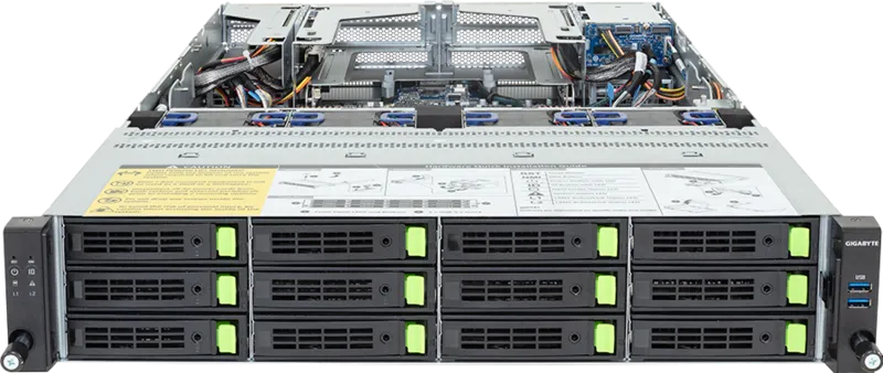| Packaging Content | 1 x R284-A90-AAL1 2 x CPU heatsinks 1 x Mini-DP to D-Sub cable 2 x Carriers 1 x 2-Section Rail kit |