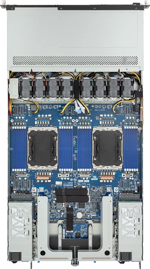 | Power Supply[#1] | Dual 2000W 80 PLUS Titanium redundant power supply AC Input: DC Input: (Only for China) DC Output: [注] GIGABYTEでは、さまざまな効率等級および出力仕様の電源ユニット(PSU)をご用意しています。完全な冗長性はサーバーの構成によって異なる場合があり、別の電源ユニットの選択肢が必要になる可能性があります。最適な電源ソリューションについては、弊社営業担当までお問い合わせください。 |