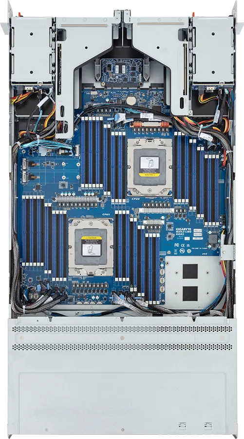 | Memory | 48 x DIMM slots DDR5 memory supported 12-Channel memory per processor AMD EPYC™ 9005: RDIMM: Up to 5200 MT/s (1DPC) RDIMM: Up to 4400 MT/s (1R 2DPC), 4000 MT/s (2R 2DPC) AMD EPYC™ 9004: RDIMM: Up to 4800 MT/s (1DPC), 3600 MT/s (2DPC) |