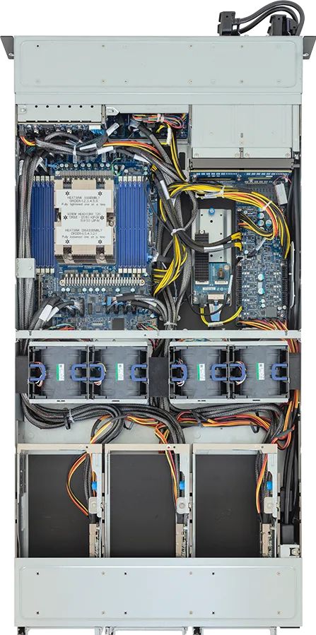 | Part Numbers | – Barebone package: 6NXV23ZU0DR000ACJ1* – Motherboard: 9MZU3MG0UR-000-3* – 3-Section Rail kit: 25HB2-T76100-K0R – CPU heatsink: 25ST1-563400-C1R – M.2 heatsink: 12SP2-11000E-00R – Backplane board – CBPX060: 9CBPX060NR-00* – Fan module 60x60x56mm: 25ST2-665620-S1R – Fan module 80x80x80mm: 25ST2-88802D-F1R – I/O board – CFPX142: 9CFPX142NR-00* – DC-SCM board (A)+(B):    A) CDCX101: 9CDCX101NR-00*    B) CSC403: 9CSC403NR-00* – Mini-DP to D-Sub cable: 25CRN-200801-K1R – GPU power cable (12VHPWR, 450mm): 25CRI-4500B0-Y4R – GPU power cable (12VHPWR, 550mm): 25CRI-5500B1-Y4R – GPU power cable (12VHPWR, 750mm): 25CRI-7500B0-Y4R – DPU power cable (2x PCIe 8pin, 520mm): 25CRI-5201B0-Y4R – Power supply: 25EP0-22000P-G1S Optional parts: – Chassis intrusion switch: 25HA1-R28390-U1R – Cable Management Arm: 25HB2-2AA700-K0R |