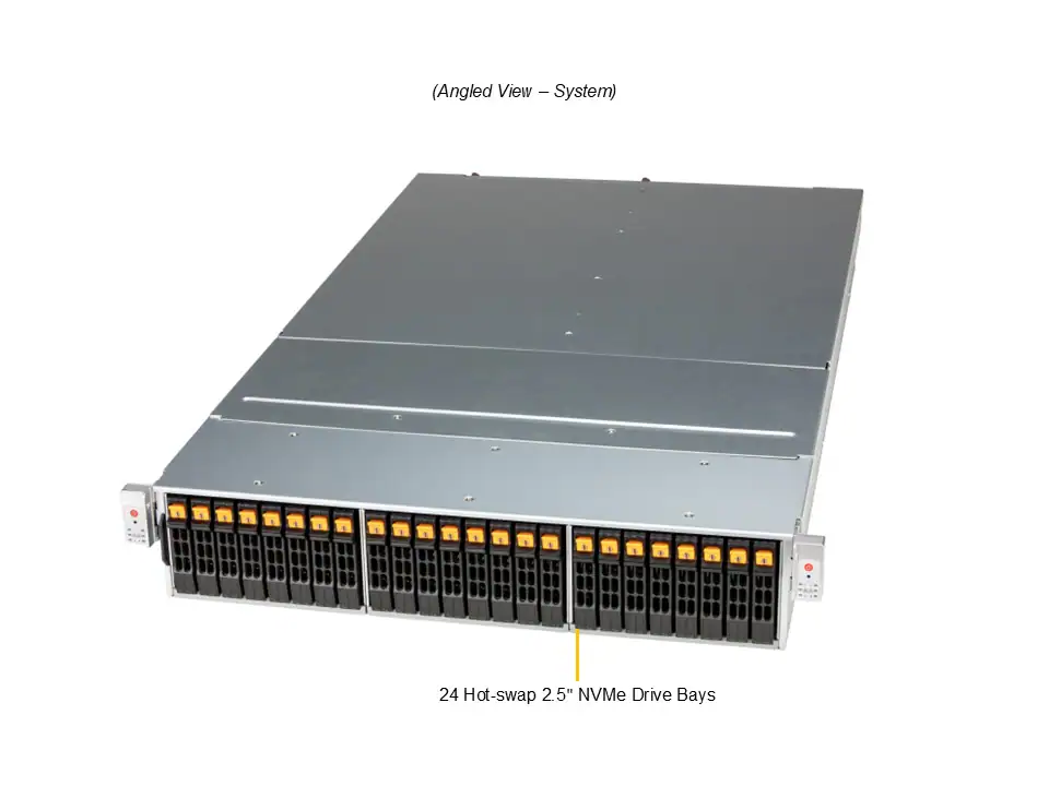 - 最大24基のフロントホットスワップ対応2.5インチNVMeドライブベイ