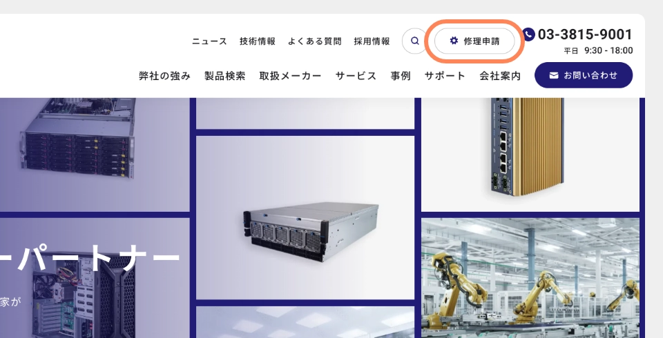 製品の初期不良、故障等での修理・交換・保守のご依頼は会員ページより申請いただけます。